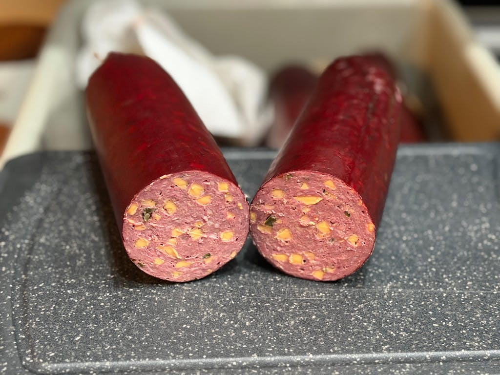 Did venison jalapeño and cheddar summer sausage. Excellent product well worth the time and effort.