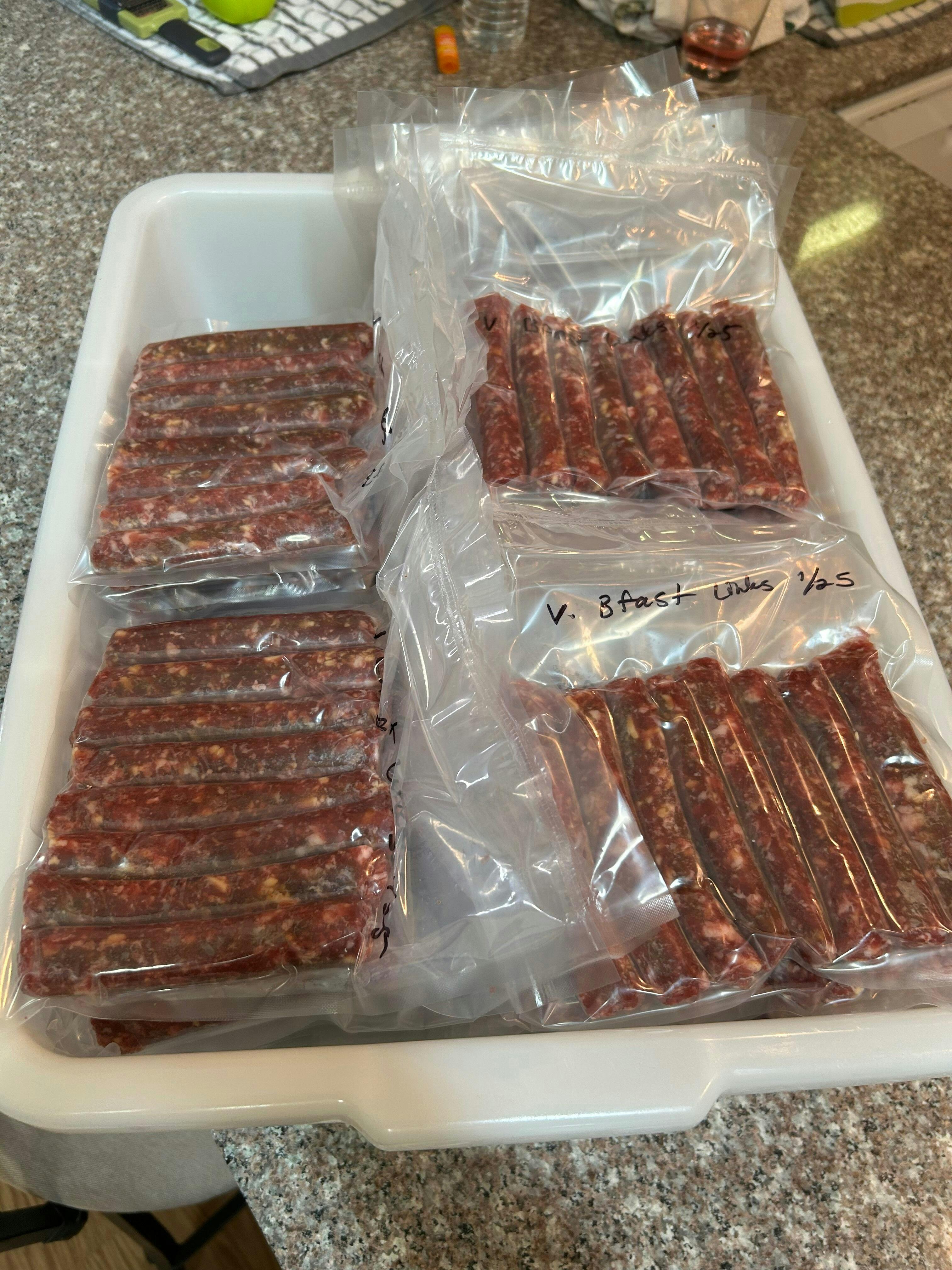 What flavor most represents the smell and taste of breakfast? Is it maple? We think so, and these sweet (and salty) Maple Breakfast links are proof. This bundle comes with enough REAL MAPLE SUGAR seasoning and casings to make 25# of your favorite breakfast meat into delicious links. We use pork for ours, but try out any other type of meat you'd like!