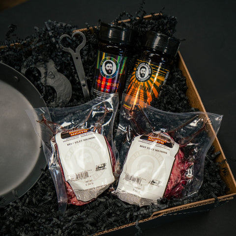 This gift bundle combines craftsmanship, premium flavors, and quality cookware for unforgettable meals. Featuring a hand-forged carbon steel skillet, a heart-shaped hook, premium seasonings, and tender filet mignon steaks, it’s ideal for food lovers or anyone who enjoys a special dining experience.
