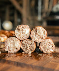 Enjoy our Sauerkraut and Swiss Reuben Bratwurst: We've taken the iconic Corned Beef Reuben sandwich, a true icon in the world of cured meats, and made it into bratwursts fit for a king! Think about tangy, real sauerkraut, savory corned beef spices, and a healthy dose of Swiss cheese, all blended into a juicy, perfectly seasoned brat. It's a taste of deli heaven, ready to grill!